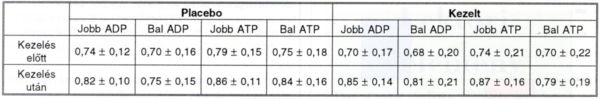 - a mért értékek a két (placebo és kezelt) csoportban a kezelés előtt nem különböztek szignifikánsan,