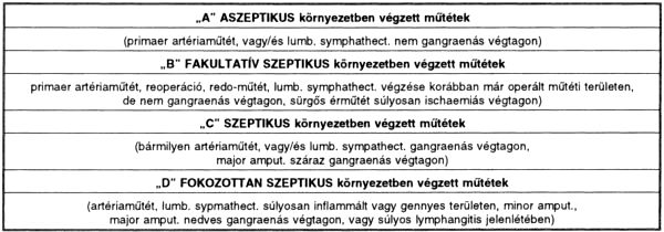 Az artériás érbetegek műtéteinek nosocomiális osztályozása.