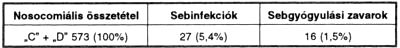 Korábban szintén utaltunk az irodalmi adatok hézagos voltára. A tájékozódást az is nehezíti, hogy a sebgyógyulási zavar fogalmát sokszor összemossák az infekcióéval. Ezért kellett az értékelésnél saját megfigyeléseinkre támaszkodnunk. Mindezek előrebocsátása után vizsgáljuk meg infekcióregiszterünk eredményeit.